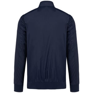 Double collar with inner neckline in 1x1 rib, elasticated cuffs and hem 1x1 rib (97% polyester/3% elastane).