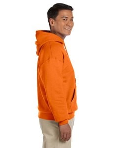Nasza bluza z kapturem Gildan 18500 - Heavy Blend™ ma bardzo przyjemne i miękkie odczucie, ale jest odporna na pranie. Jest również dostępna w szerokiej gamie kolorów i rozmiarów. Wykończenia tego ubrania są wysokiej jakości. Elastyczne mankiety i pas dla większego komfortu. Ma również ciepłe, podniesione wnętrze pluszu i przednią kieszeń kangurkową.