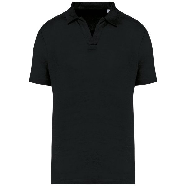 Spasso SP220 - Czarny - Men’s linen polo shirt