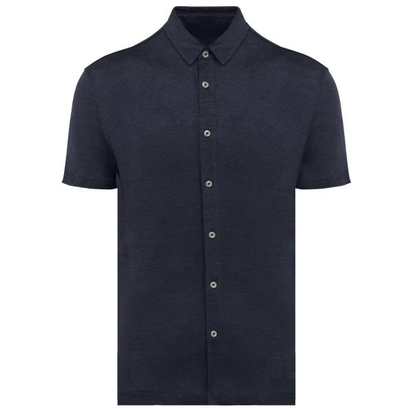 Men's linen bowling collar short-sleeved shirt