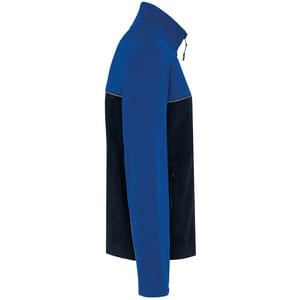 Contrasting piping between the two-tone parts of the garment (body and sleeves, front and back).